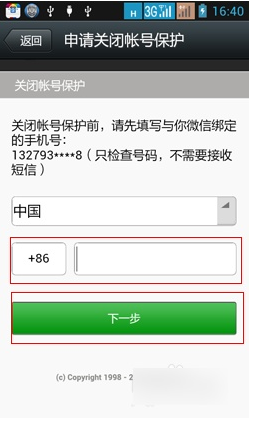 3、填上绑定自己微信的手机号码,这里只是填手机号码,不会发送验证码的。只是确定是本人在使用而已,填上以后点击一下步。