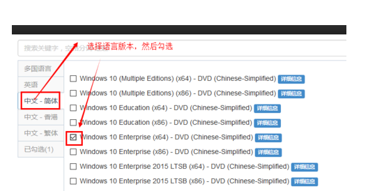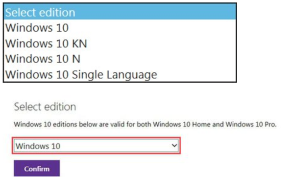选择Windows版本,我们选择第一个,即Windows 10,该版本为我们常用的版本,KN,N,Single Language为定制版本及单一语言版,选择好之后点击“Confirm”确认即可。