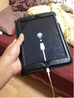 1、按住power开关3秒。2、接上在按power+home的同时屏幕变黑,默默的念10秒左右。3、放开power开关键,保持home键盘10多秒,长点也可以,屏幕是黑的