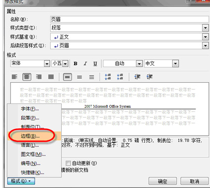 第2步,打开“修改样式”对话框,依次单击“格式”→“边框”按钮