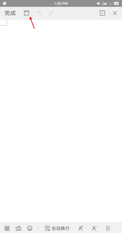7.输入完毕之后返回上一界面,找到上方保存按钮,点击保存按钮即可完成手机文档的制作,如下图所示。