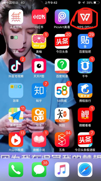 (1)在手机上安装好WPS office,从桌面打开;
