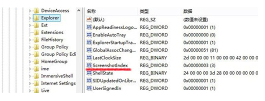 4.在右侧的文件中找到ScreenshotIndex选项并双击,然后在设置窗口中将数值数据修改为1,确定关闭窗口。