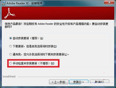 软件安装到保持产品最新界面时,点击选中“手动检查并安装更新(不推荐)”,然后继续安装就可以了,估计只有是用时间较长的用户才会想到这种方法。