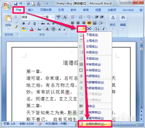 word边框有两种,分别是是word文字边框和word页面边框,下面一一介绍取消方法。