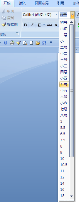 2、单击开始选项卡上的字体按钮,在弹出的下拉选项中选择较小的字号即可,如图所示。