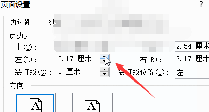 3.点击相关页边距旁的小箭头,进行微调。