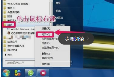 2、在所有程序中找到启动,然后在启动上面单击鼠标右键,选择打开!