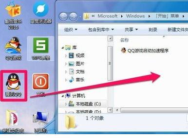4、我们现在只需要将要设置为开机启动的程序图标拖放进来即可,当然我们也可以找到一个要设置开机启动的程序,复制粘贴进来程序图标!