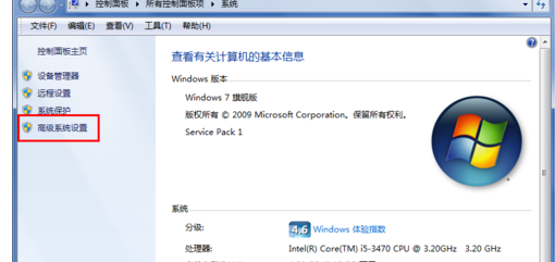 2.点击“属性”后,打开系统页面,默认显示当前系统的配置,操作系统等信息,选择左边列表中的“高级系统设置”菜单项。