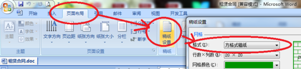 如图,依次选择 页面布局==》稿纸设置==》格式选择 方格稿纸