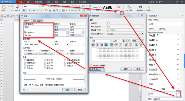 Word2013,如何把全部的非标题的文字,全部设置为某个字体