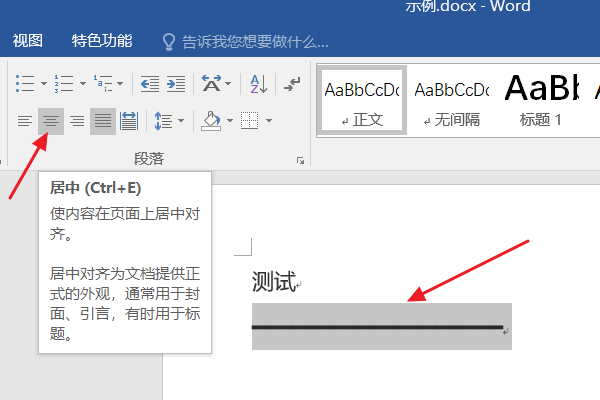 3、此时会发现,整条横线都居中了。