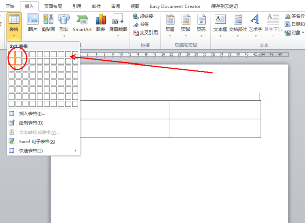 1、打开需要操作的WORD文档,点击插入选项卡中的“表格”,并根据需要插入相应行列数的表格格,如2*2。