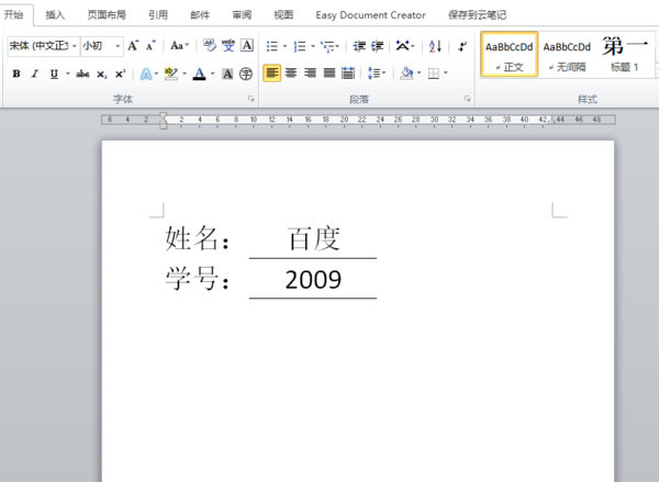 5、返回主文档,发现横线上的字已成功在横线上居中对齐。