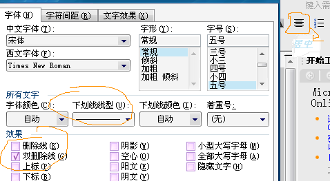 格式=》字体,选择下划线或者删除线,文字居中,点击页面上的居中工具即可