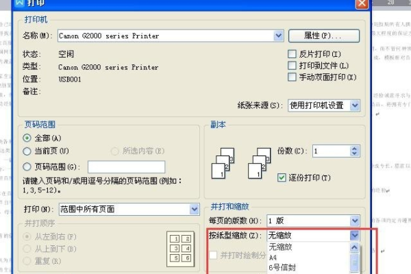 然后在弹出的对话框里“按纸张大小缩放”里设置就可以了