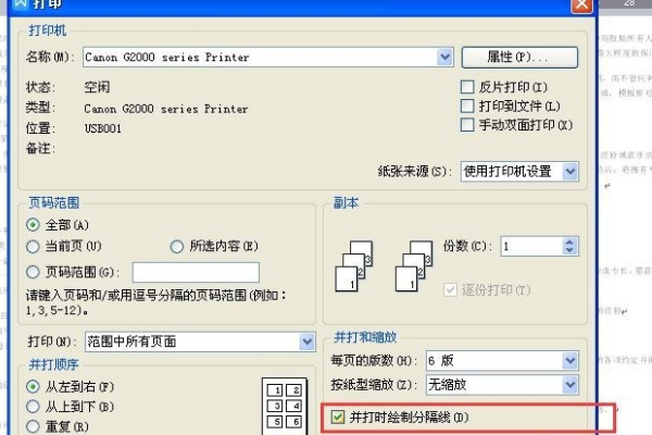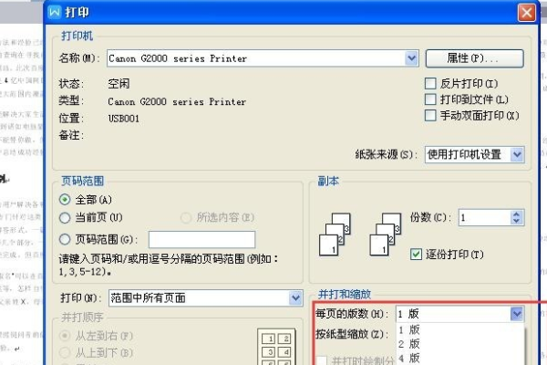另外,“每页的版数”里也可以进行设置。 这就可以将几页纸缩在一页里打印了。