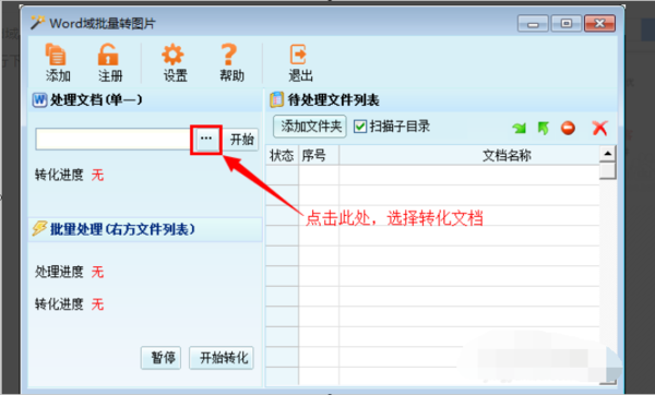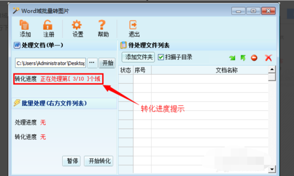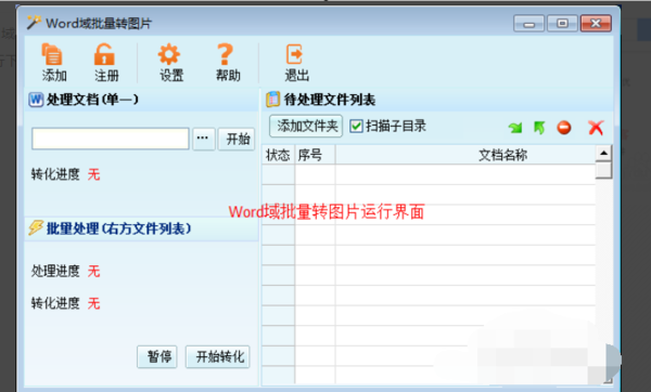 2、运行“Word域批量转图片”软件,可以看到界面如下: