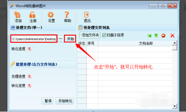 4、选择好需要转化的文档后,点击“开始”就可以开始转化文档。