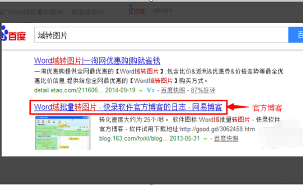 1、百度搜索“Word域批量转图片”,找到该软件的下载地址进行下载。