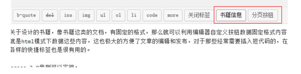 QTags.addButton( 'book', '书籍信息', '<h2>图书信息</h2>\n'+
