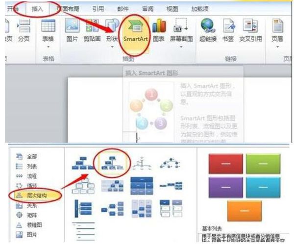 3、在word2010及以上版本中,新增了SmartArt,以方便用户制作流程图、组织架构图等图表,通过以上方法就可以实现。
