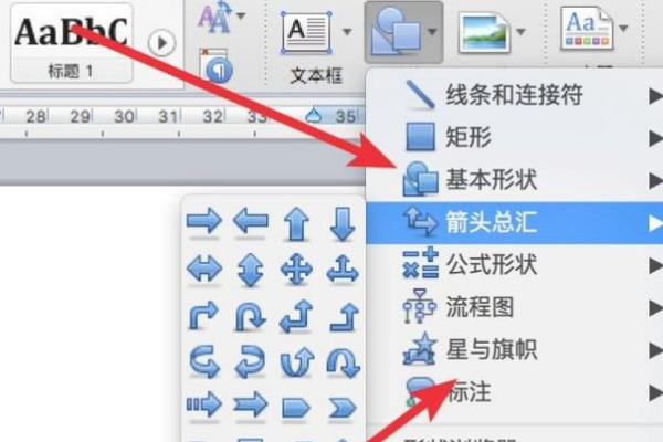 2、可以看到,在这里我们可以插入各种的形状,有箭头,旗帜,矩形等。