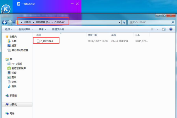 4、等到自动备份完成后,会重新进入windows系统,此时在刚才的备份路径下就会生成一个gho的备份文件,将此文件拷贝到U盘就可以了,待以后需要进行系统还原时就可以进行下一步处理了;