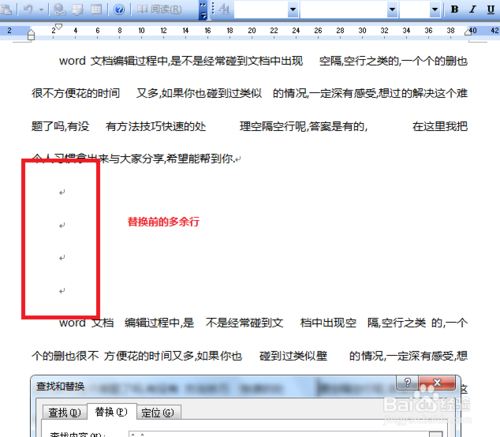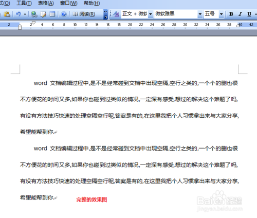 12、看一下我们处理完的文档,已经可以清楚的看到多余的空行已经被完全替换掉了。