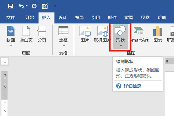 2.选择插图菜单里面的“形状”,如下图红框所示;