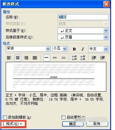 5、点击修改后出现修改样式窗口, 点击窗口左下角的格式按钮上的下拉箭头
