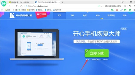 浏览器搜索开心手机恢复大师或者直接进入开心手机恢复大师官网,根据个人电脑的版本下载相应的软件,将软件下载并安装到PC上。