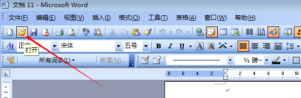 通常word窗口中,菜单栏下边是常用工具栏,常用工具栏左边第二个按钮是“打开”按钮。