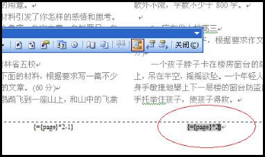 6、将复制的域代码“{={page}*2-1}}”改为“{={page}*2}}”;