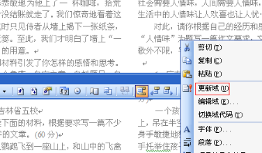 再按上面介绍的方法更新域,即可显示各栏的正确页码。若要在更新域后修改域代码,可以将其选中,单击鼠标右键,选择快捷菜单中的“切换域代码”命令,即可显示出域代码。