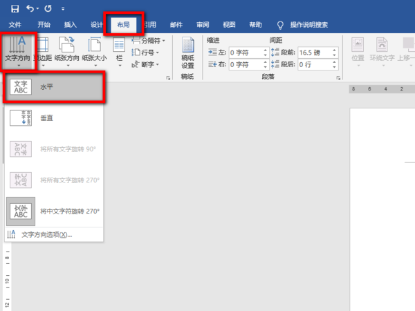 第四步,找到上方菜单栏的布局-文字方向-水平点击即可。
