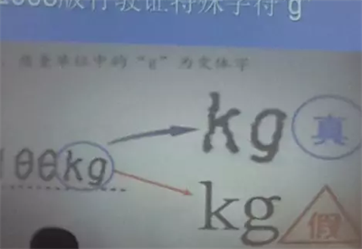 还有常见的数字“0”、重量单位“kg”等,这几个数字是较为容易看出真伪。