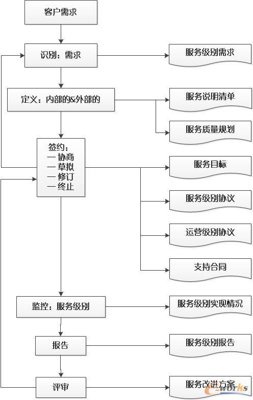 1.公司层面:包含适合所有用户的大类服务级别管理问题。适用于比较稳定的服务,系统不会频繁更迭和升级。