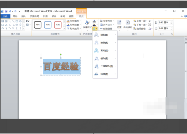 在Word2007或Word2010中,艺术字的文本效果在哪?如何将艺术字设置为文本效果转换波形2
