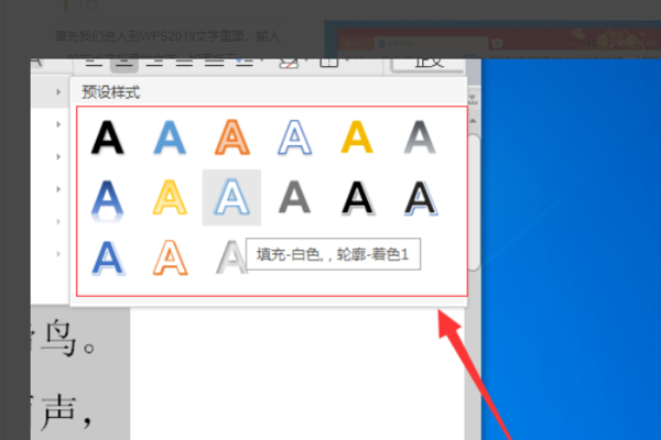 在插入选项卡下有个艺术字的设置哦 如下图所示 希望能够帮到你哦