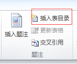 将主界面切换到“引用”一栏,在“引用”栏目下的“题注”中找到“插入表目录”,点击此处
