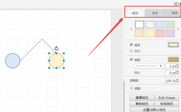 3、在右边可以编辑图形样式等,连接线可以调整连接位置;