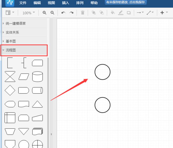 1、进入流程图制作界面,在左边的“流程图”图库中选择绘制图形;