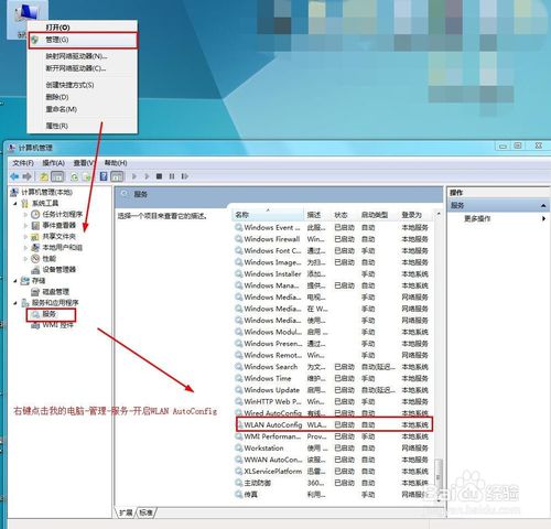 步骤:1)右键“我的电脑”—管理—服务和应用程序—服务