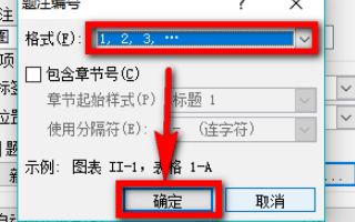 6、在弹出的题注窗口中点击图示位置下拉箭头,在下拉列表中选择其中一种编号方式,选择好之后点击【确定】按钮。
