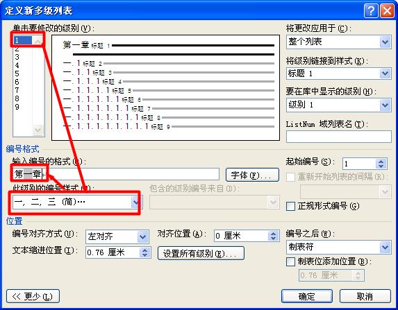 这个需要使用自定义多级编号来进行设定