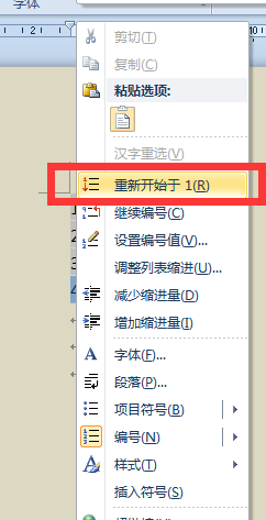 在编号上右键单击,选择重新开始于1 就可以了