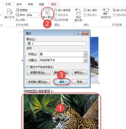 4、鼠标点击第二张图片,单击“题注”组中“插入题注”后点击“确定”。