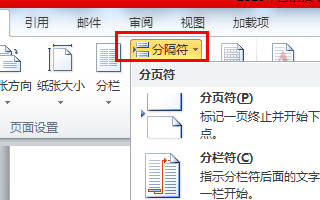 2、点击页面布局菜单 之后,出现分隔符如下图点击进入